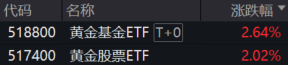 黄金股票ETF(517400):覆盖黄金全产业链股票,可充分享受黄金价格上涨及行业发展带来的红利。