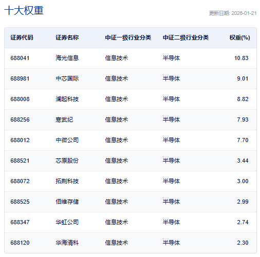数据来源:中证指数公司,截至2026年1月21日。风险提示:上述个股仅供展示指数权重,非个股推荐,不构成任何投资建议