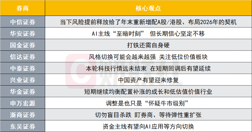 东吴证券认为本轮调整是外围因素与内生压力共同作用的结果:一是,全球流动性紧缩之下,A股难以“独善其身”;二是,海外“AI泡沫”焦虑、科技板块下跌,波及A股;三是,历史上A股Q4“结账季”博弈是常态。考虑到本轮指数回撤幅度在历年牛市同期中已处于中等偏上水平,近期连续调整后继续下行的空间相对有限,维持观点倾向于判断11月之后市场调整会结束,并迎来春季行情的提前布局窗口。一方面是,岁末年初的流动性逻辑依然坚实。另一方面,2026年作为“十五五”规划的开局之年,上半年以科技创新与现代化产业体系为核心的政策主线有望进一步强化。