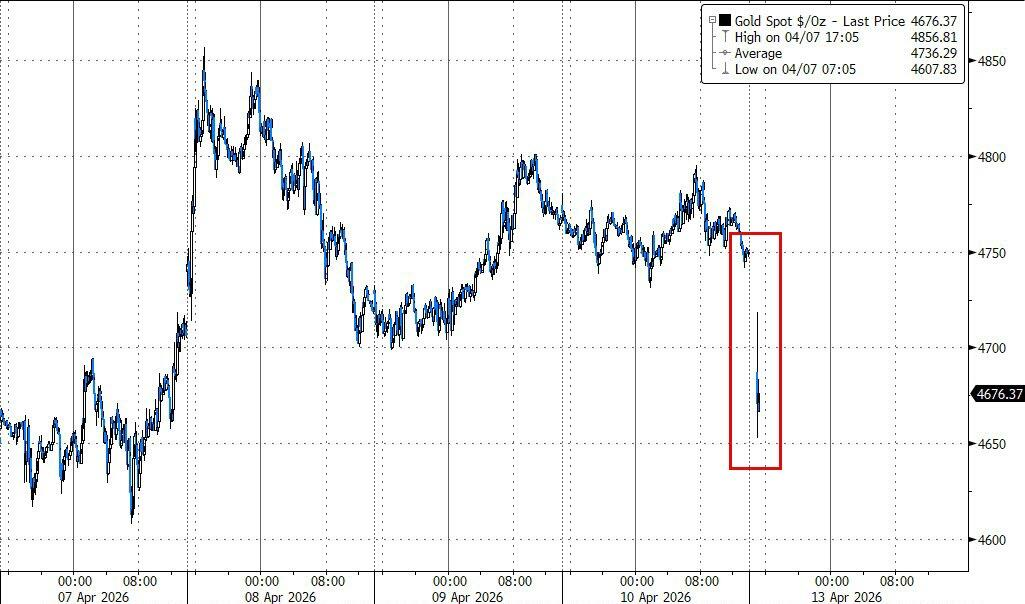 由于周末美伊和平谈判无果而终,加之美国封锁霍尔木兹海峡的计划加剧了全球能源供应冲击,令市场对通胀的担忧迅速升温,周一开盘后不久黄金和美债双双走低,市场再度出现了恐慌环境下“避险资产不避险”的奇葩一幕……