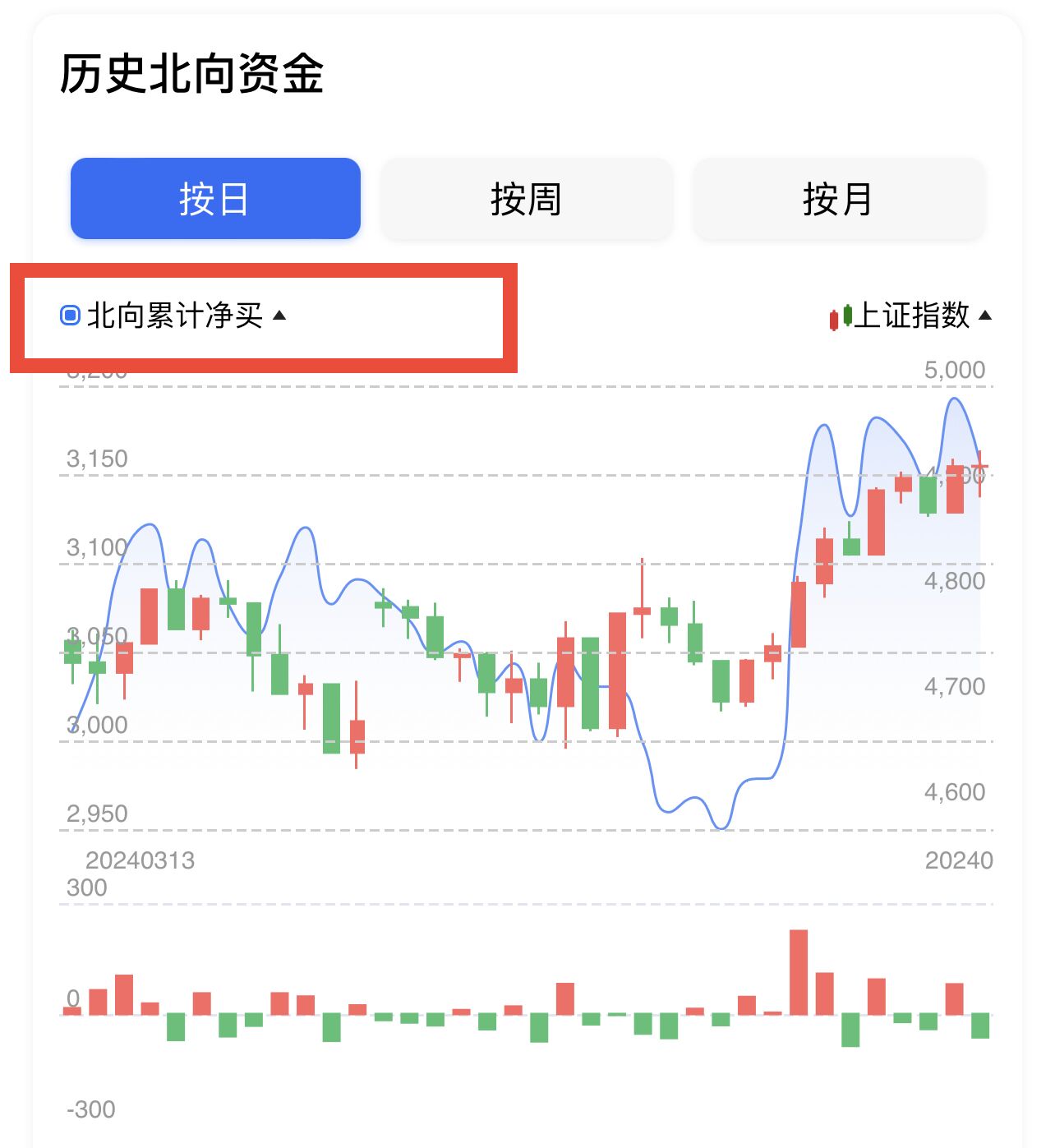 改版之后历史北上资金走势,由改版前的累计净买额替换为成交总额: