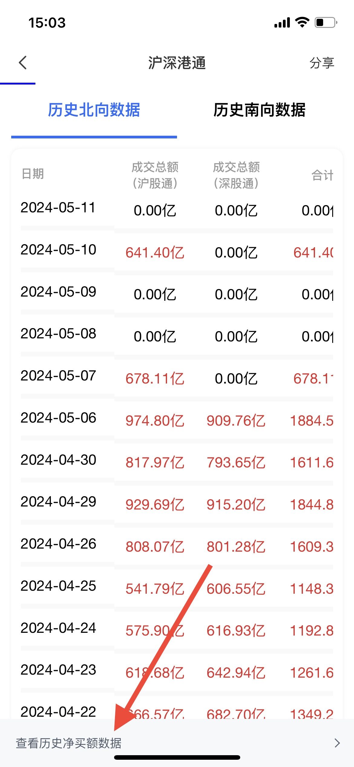 为了方便用户查阅过往北上资金金额情况,功能页底部继续保留历史净买额查询入口: