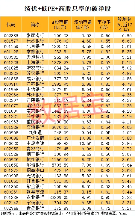 绩优+低PE的破净股名单出炉