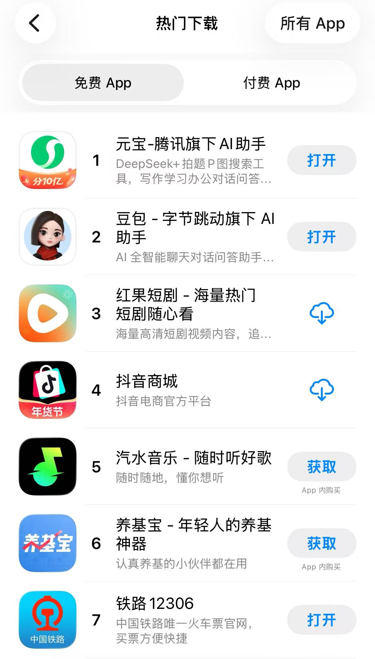 腾讯元宝App升至苹果商店免费App第一名,此前宣布10亿现金红包活动开启。