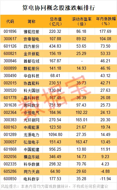 上市公司层面,证券时报·数据宝根据公开信息不完全梳理,包括电力运营商、数据中心服务商、电力设备企业等,合计有20多家公司明确算电协同业务。