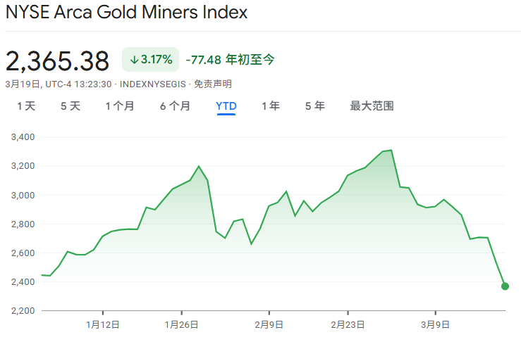 由于中东战事持续推高国际油价,交易员大幅下调了对美联储降息的预期,导致全球黄金矿业股大幅下挫,年内由涨转跌。