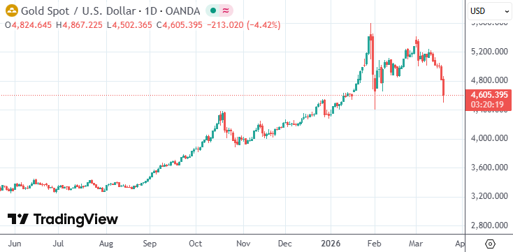日内,美国WTI原油价格升破每桶100美元。分析称,能源成本上升可能推 高通 胀,使各国央行更难降息,从而对黄金构成压力。自中东战事爆发以来,现货黄金已累计下跌约13%。