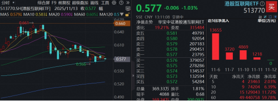 重仓 互联网 龙头的港股互联网ETF(513770)场内价格现跌1.03%,向下逼近半年线,盘中高频溢价,显示买盘资金承接意愿较强。