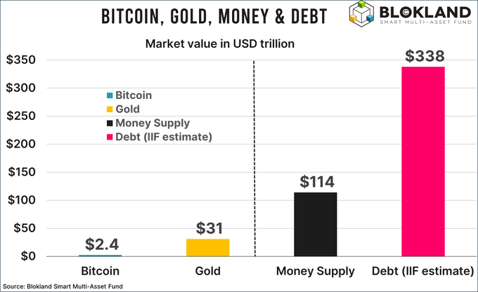 事实上,黄金真正的市值对比对象,或许不应是那些科技巨头们,而是全球惊人的货币供应量以及愈发庞大的债务规模……