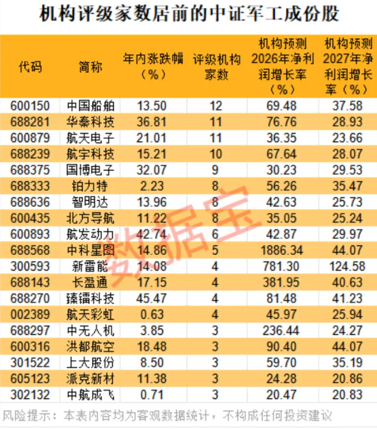 从未来成长性来看,3家及以上机构评级的个股中,2026年、2027年预测净利润增长率均超20%的概念股有19只,中科星图、 新雷能 、 长盈通 、中无人机两年增速均值较高,均超过100%。