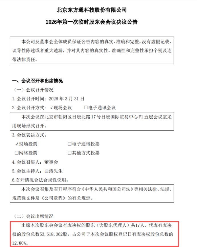 然而,东方通4月1日发布的股东会决议公告却显示,出席本次会议并拥有表决权的股东(含股东代理人)为17人,代表有表决权的股份总数为5361.8362万股。两者数据存在差异,股东人数相差11名,股份数相差约238.67万股。