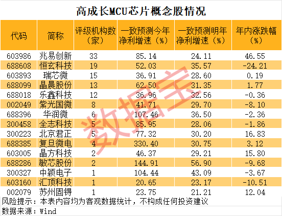 一批高成长股浮现。有15只个股机构一致预测今年、明年净利增速均超20%。其中, 恒玄科技 、 晶晨股份 、乐鑫科技等个股机构一致预测两年净利增速均超30%。