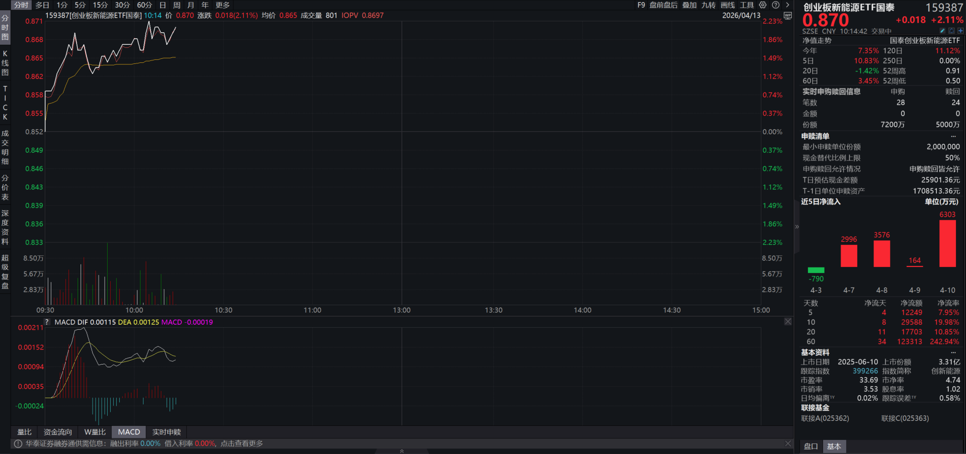 创业板新能源ETF(159387)大涨2%,连续4日净流入超1.3亿元,覆盖风光储锂全产业链, 固态电池 +储能占比近60%,成为把握本轮能源危机下新能源价值重估的核心工具。