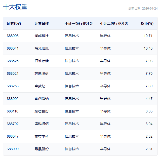 数据来源:中证指数,截至2026.4.24。上述个股仅供展示指数权重,非个股推荐,不构成任何投资建议。