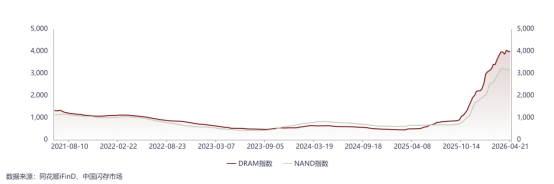 中信证券指出,Agent AI时代存力为核心,AI驱动的需求爆发与原厂扩产错位致使缺货常态化,供不应求至少持续至2027年,2026年上半年涨价幅度显著。