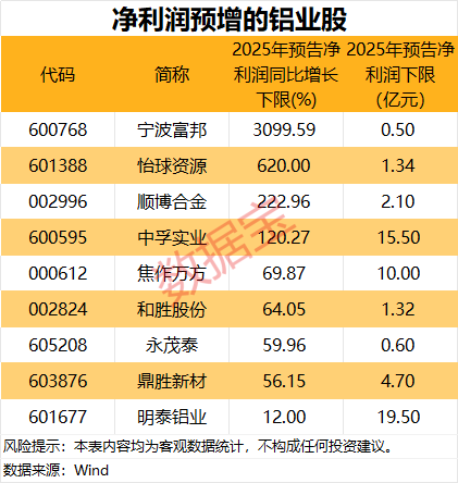 从业绩上来看,17股发布了2025年度业绩预告,按预告净利润下限计算,其中9股预计实现归母净利润同比增长, 宁波富邦 、怡球资源、 顺博合金 预计增幅超200%。