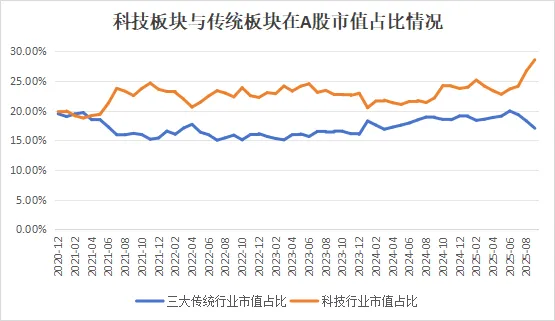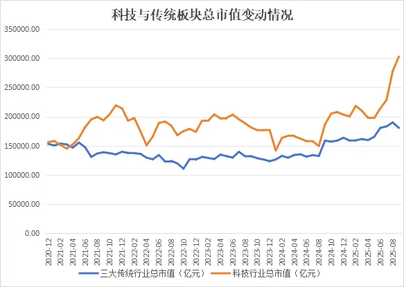 科技板块市值大幅超过传统板块
