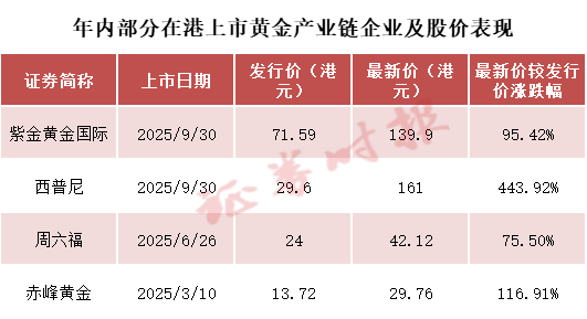 记者梳理发现,今年以来,包括 紫金黄金国际 、 周六福 、 赤峰黄金 等在内的多家黄金产业链相关企业已在港股挂牌上市,还有多家公司正积极推动赴港上市事宜。