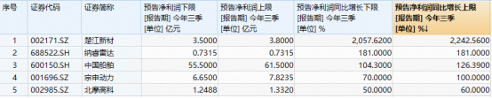 据统计,截至最新,国防军工ETF(512810)5只成份股已发布三季报业绩预告,集体预增! 楚江新材 预计净利同比最高增超22倍, 纳睿雷达 、中国船舶、 宗申动力 预告净利上限均超100%, 北摩高科 预增最高60%。