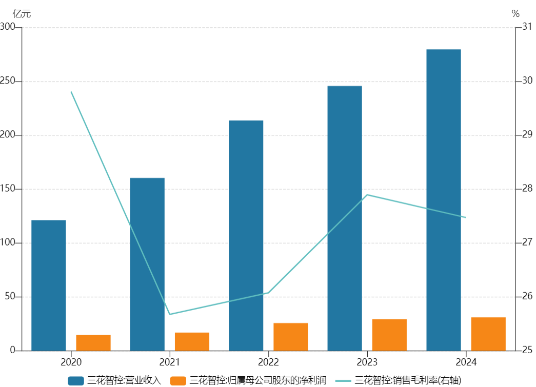 机构多持看好态度。据民生证券电新团队研报认为,三花智控依托电机制造经验和规模优势,成功切入仿生机器人机电执行器制造领域。公司持续优化产品轻量化与高精度性能,仿生机器人有望成为公司第三大核心增长极。 中金公司 研报认为,三花智控前瞻布局机器人关节总成业务,并配套核心客户储备产能。截至2024年底,公司机器人研发团队已超过180人,位于行业领先地位。