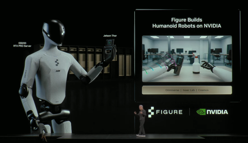 在备受投资者关注的“物理AI”方面,黄仁勋的演讲主要放在Omniverse 数字孪生 技术上,包括利用该技术构建现代工厂,以及训练和打造机器人。其中机器人初创公司Figure宣布与英伟达开展合作,加速下一代 人形机器人 研发。Figure正在使用英伟达加速计算构建其Helix视觉-语言-动作模型,并采用Isaac平台进行仿真和训练。