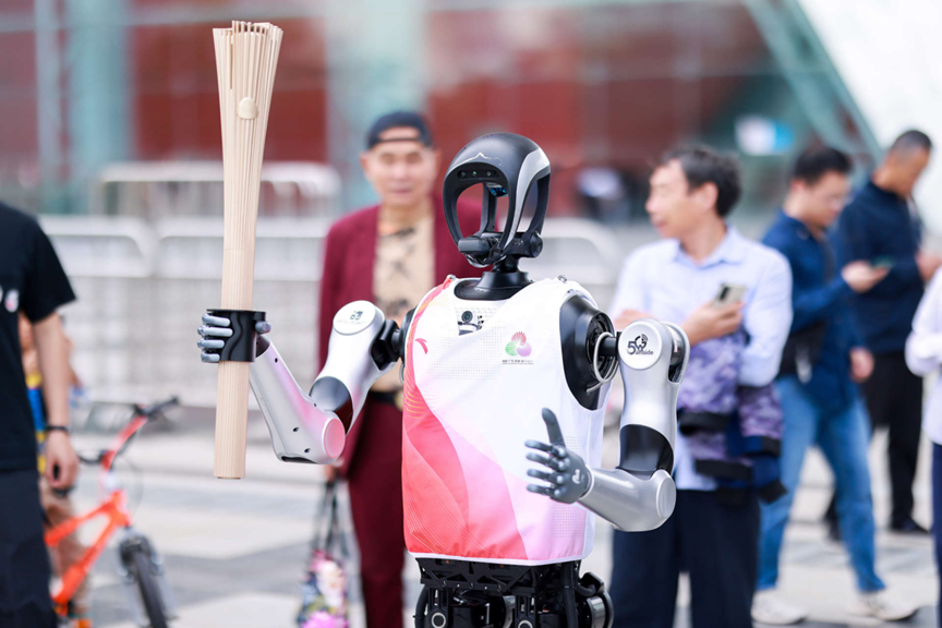 在第十五届全国运动会火炬传递中,全球首款搭载 5G -A技术的人形 机器人 “夸父”作为“0号火炬手”,在无人陪跑的情况下,完成从深圳市民中心至莲花山公园路段的百米接力任务。