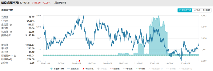 从估值层面来看,以申万二级指数统计,旅游及景区、酒店餐饮、航空机场指数目前市盈率55.14倍、42.55倍、57.87倍,处于近十年65.28%、39.17%、64.39%分位点;市净率3.14倍、1.84倍、2.81倍,处于近十年64.55%、5.16%、83.58%分位点。