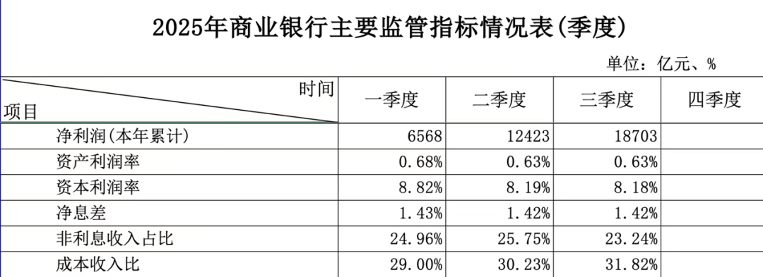 资产质量方面,2025年三季度末,商业银行不良贷款余额为3.5万亿元,较上季末增加883亿元;商业银行不良贷款率为1.52%,较上季末上升0.03个百分点。