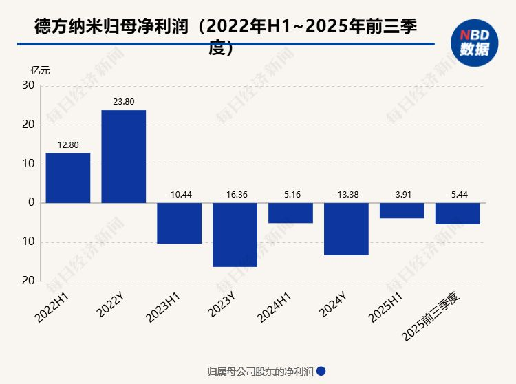 比如龙蟠科技,2023年、2024年和2025年前三季度净利润分别为亏损12.3亿元、6.36亿元、1.1亿元;万润新能净利润分别为亏损15.04亿元、8.7亿元、3.52亿元; 德方纳米 净利润分别为亏损16.36亿元、13.38亿元、5.27亿元。