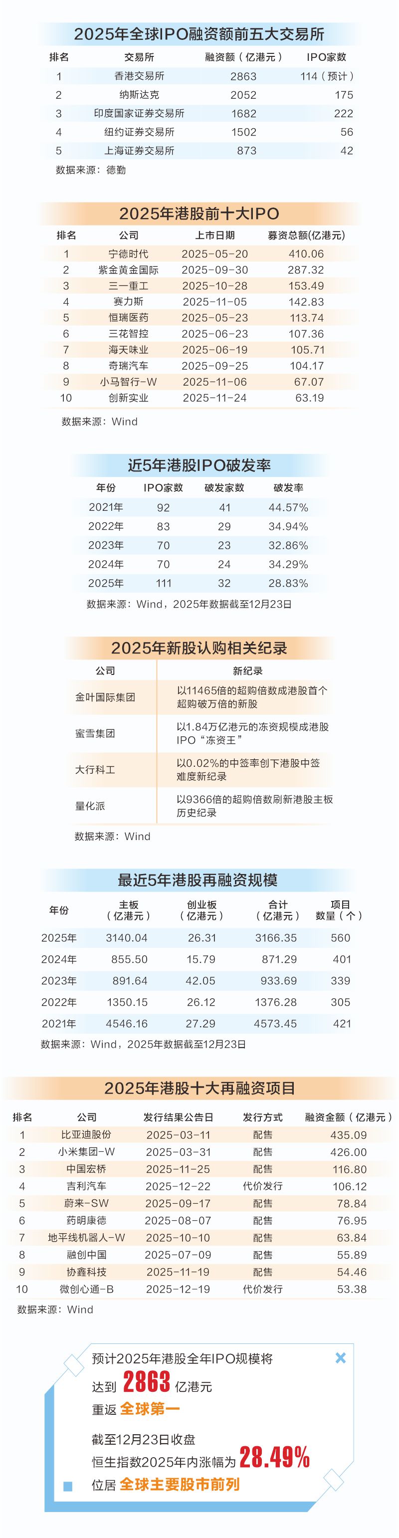 而在今年,在 宁德时代 等一批大型IPO的带动下,港股IPO规模持续高歌猛进,预计2025年港股全年IPO规模将达到2863亿港元,重返全球第一。此前的2015年、2016年、2018年和2019年,港股IPO规模曾雄冠全球。