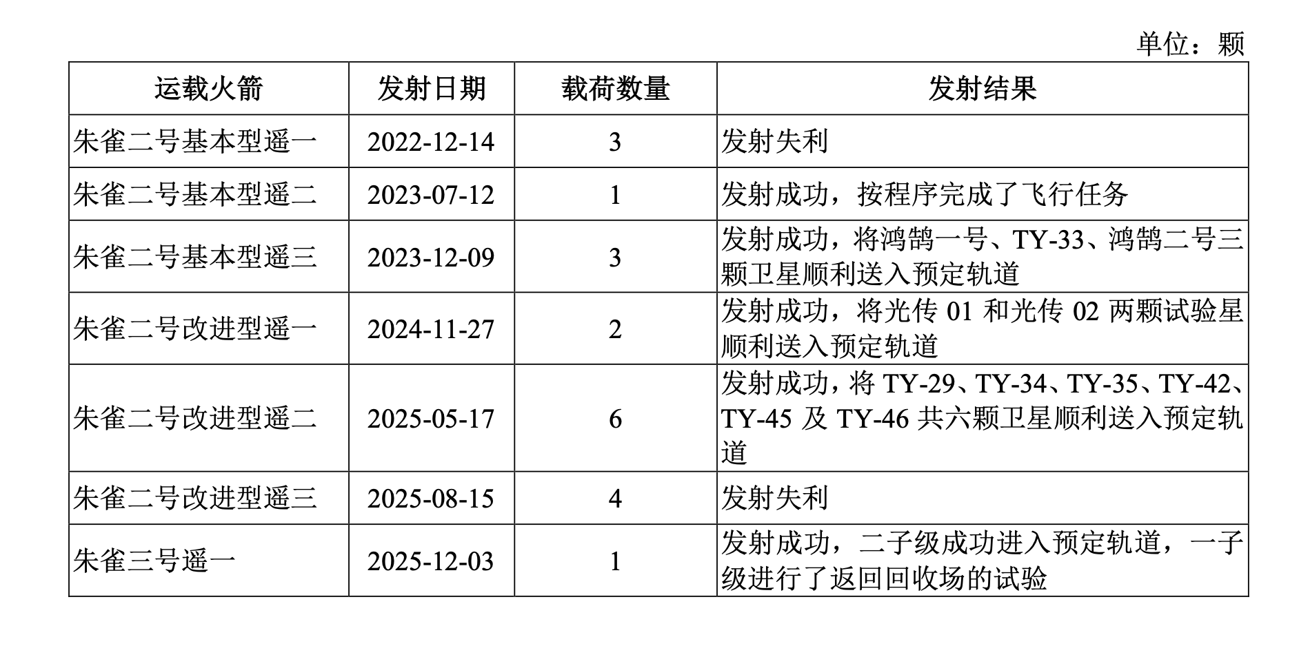 12月3日,朱雀三号遥一运载火箭在东风商业航天创新试验区发射升空,火箭二级进入预定轨道,一级回收试验失败。