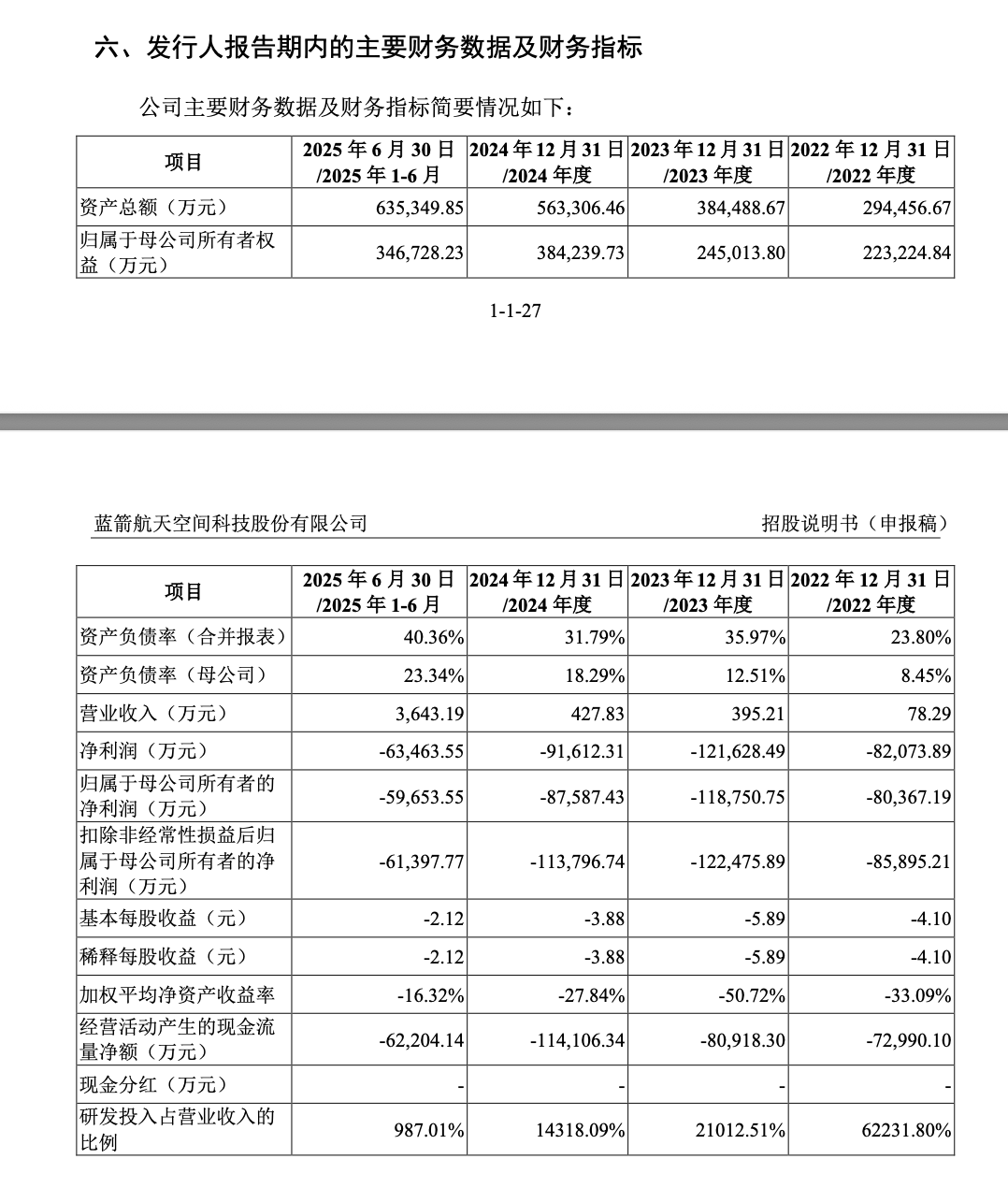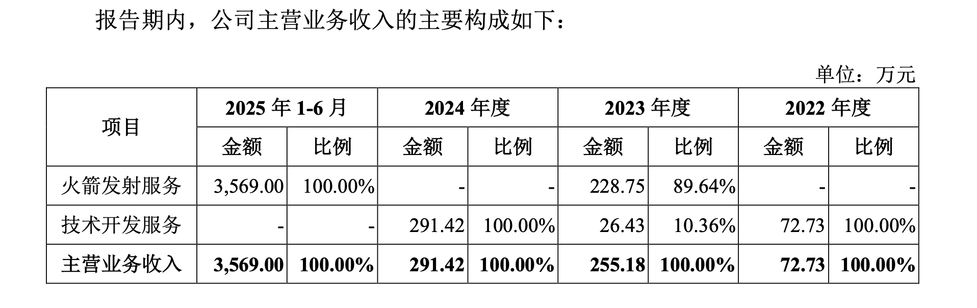 2022年,蓝箭航天营收仅78.29万元,2023-2024年在百万元规模,2025年上半年涨至3643.19万元。