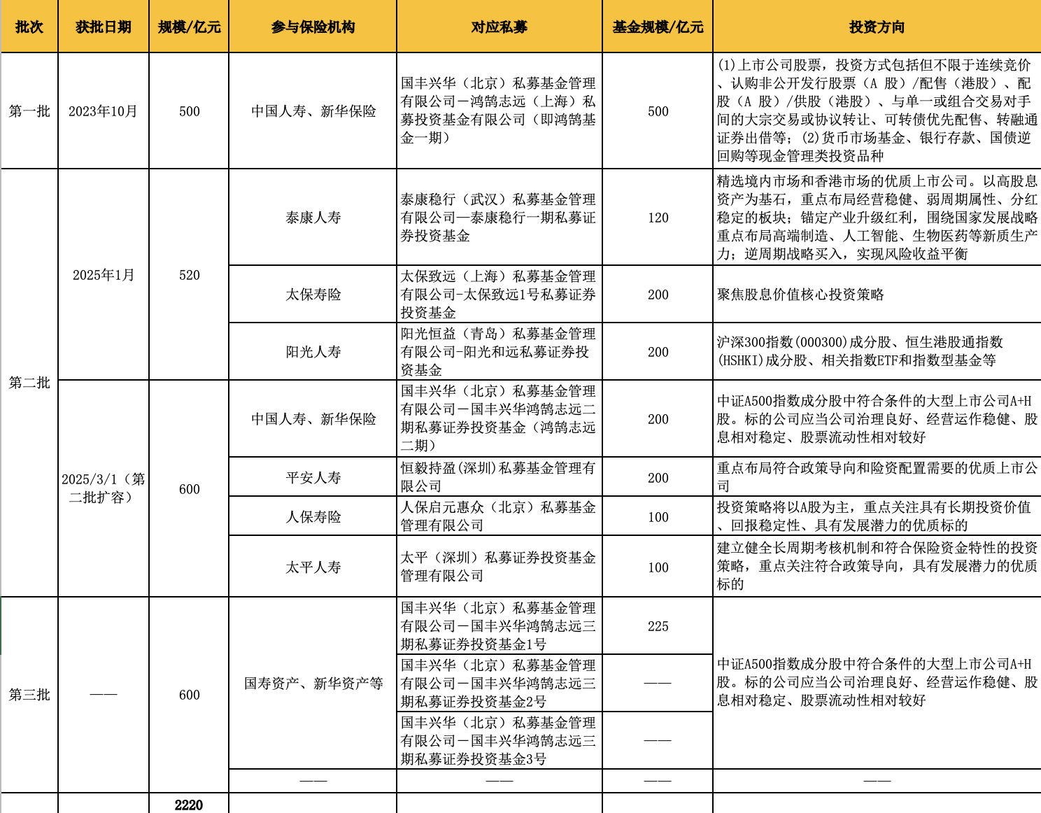 其中,鸿鹄志远一期总规模为500亿元,是我国首只保险系私募证券投资基金,为公司型基金,截至2025年3月已经完成全部投资。