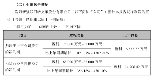 新强联 (300850)1月23日晚间发布公告称,预计2025年度归属于上市公司股东的净利润为7.80亿—9.20亿元,比上年同期增长1093.07%—1307.21%。对于业绩变动的原因,公司表示,受益于风电行业需求回暖,装机需求持续释放,公司依托技术优势进一步扩大了市场份额。在产能利用率保持较高水平的背景下,公司通过优化成本管控、提升高附加值产品比重,实现了产品毛利率的稳步提高。此外,报告期内非经常性损益预计对净利润的影响额约为9500万—11000万元,其中主要系持有金融资产产生的公允价值变动损益以及处置金融资产产生的损益所致。