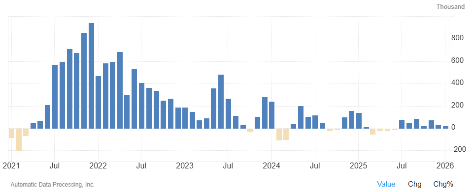 由于联邦政府部分停摆,美国劳工统计局(BLS)的官方就业数据发布被推迟,因此ADP数据可能成为本周能最完整反映1月就业状况的指标。