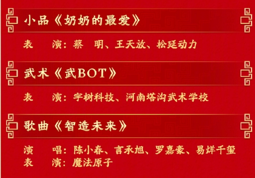 马年春晚节目单公布,松延动力、宇树科技、魔法原子、银河通用等有表演节目。