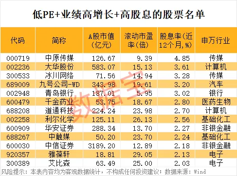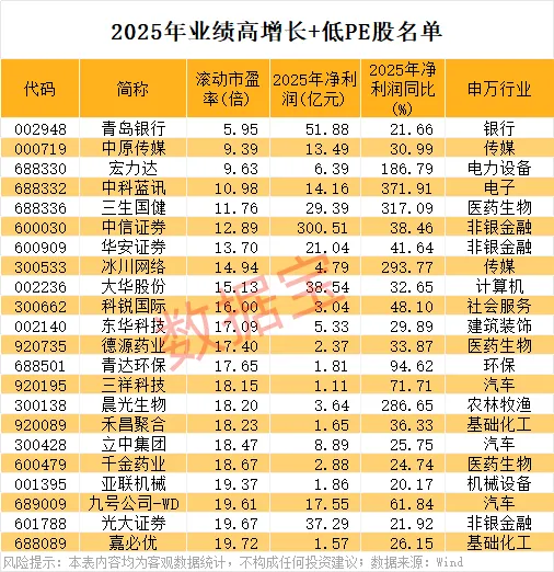 业绩高增长+低PE股出炉