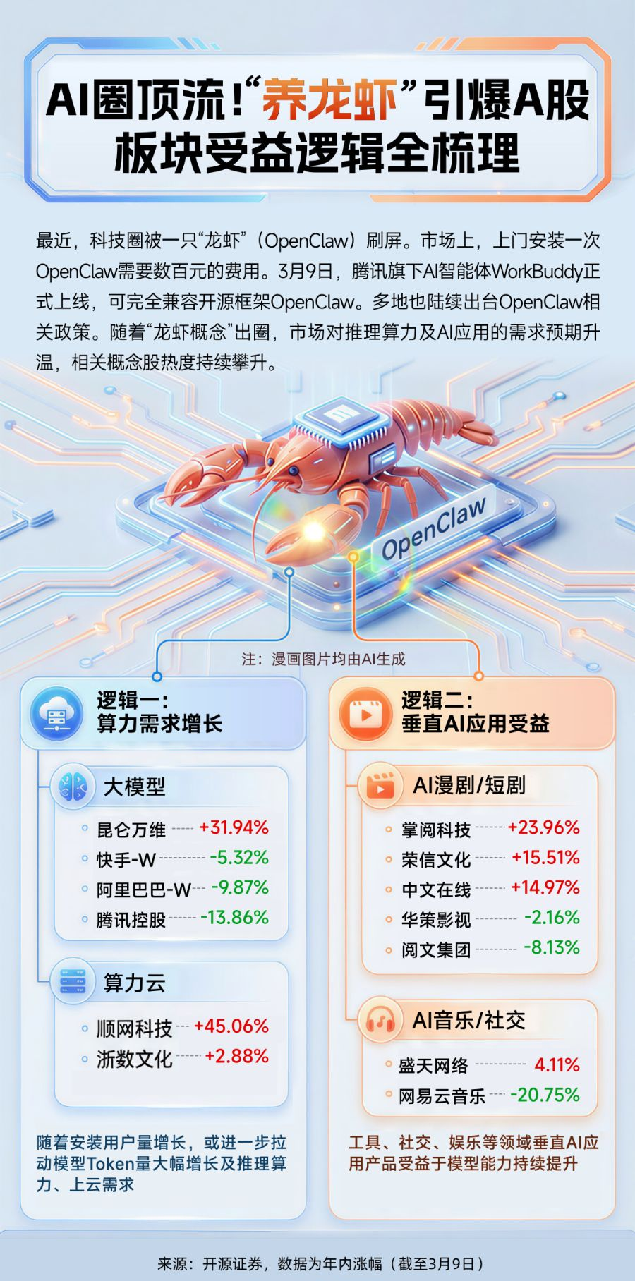 消息面上,3月9日,腾讯宣布,旗下全场景AI智能体WorkBuddy正式上线。