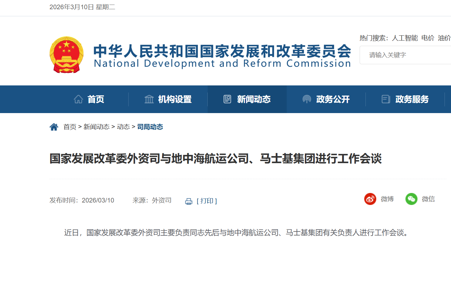 近日,国家发展改革委外资司主要负责同志先后与地中海航运公司、马士基集团有关负责人进行工作会谈。
