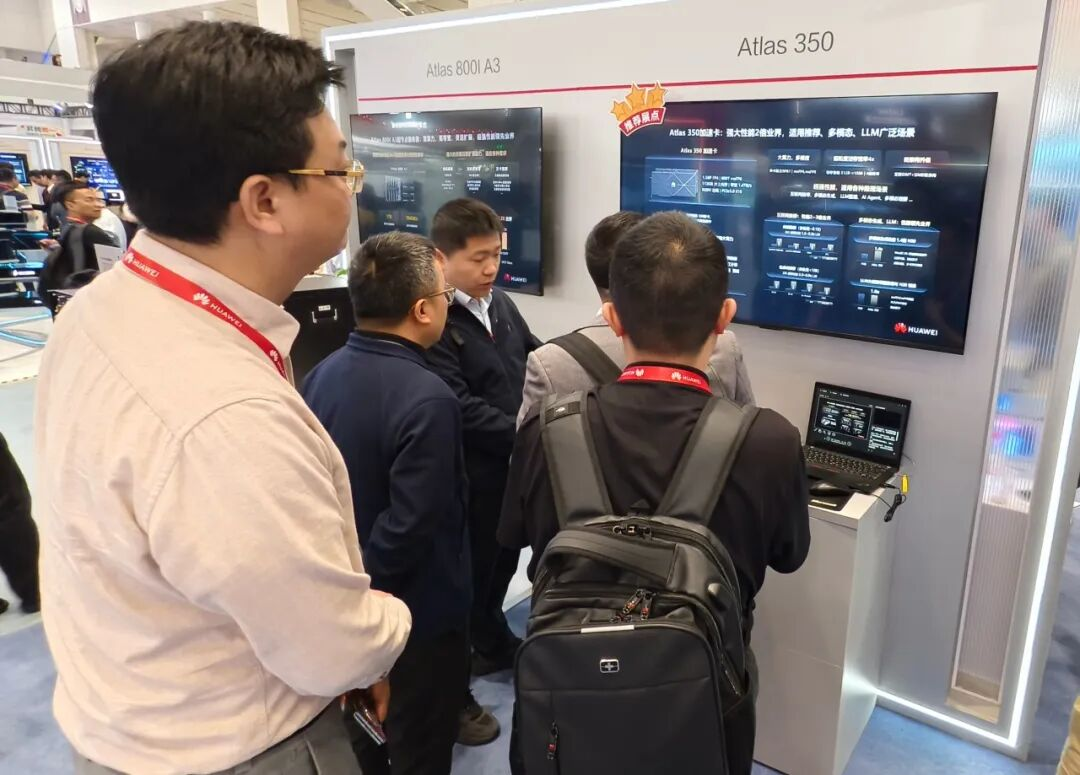 展台工作人员告诉记者,Atlas 350除了支持FP16、FP8外,还支持更低精度的FP4。这意味着,集成Atlas 350板块的服务器能够支持更大的模型以及时延更低的推理,精度小了,计算速度就会更快,寄存器效率也会更高。目前Atlas 350在 互联网 推荐场景的实测数据显示,该卡的时延更低、响应更快,特别适合 短视频 、电商、广告推荐等高并发场景。在大模型推理、文生图、文生视频等多模态场景,其性能也和英伟达的L20相当。