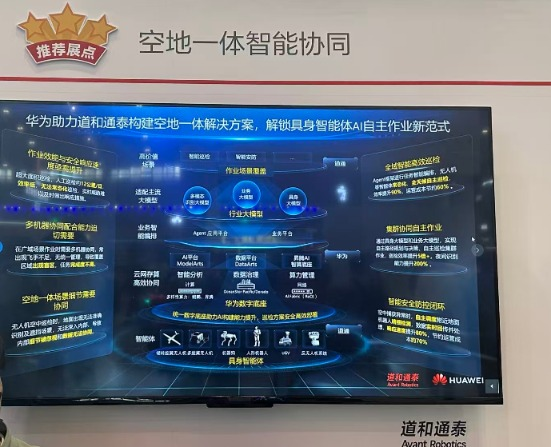 在道和通泰展台,《科创板日报》记者看到华为与该公司合作构建的空地一体解决方案。该方案基于智能体框架,实现任务智能编排,支撑 无人机 等开展常态化、全天候自主巡检。借助具身大模型与业务大模型,系统可自主完成路径规划与决策,实现集群化自主巡检作业。当空中巡检发现异常时,系统会自动调度附近的地面机器人进行精细化检测。