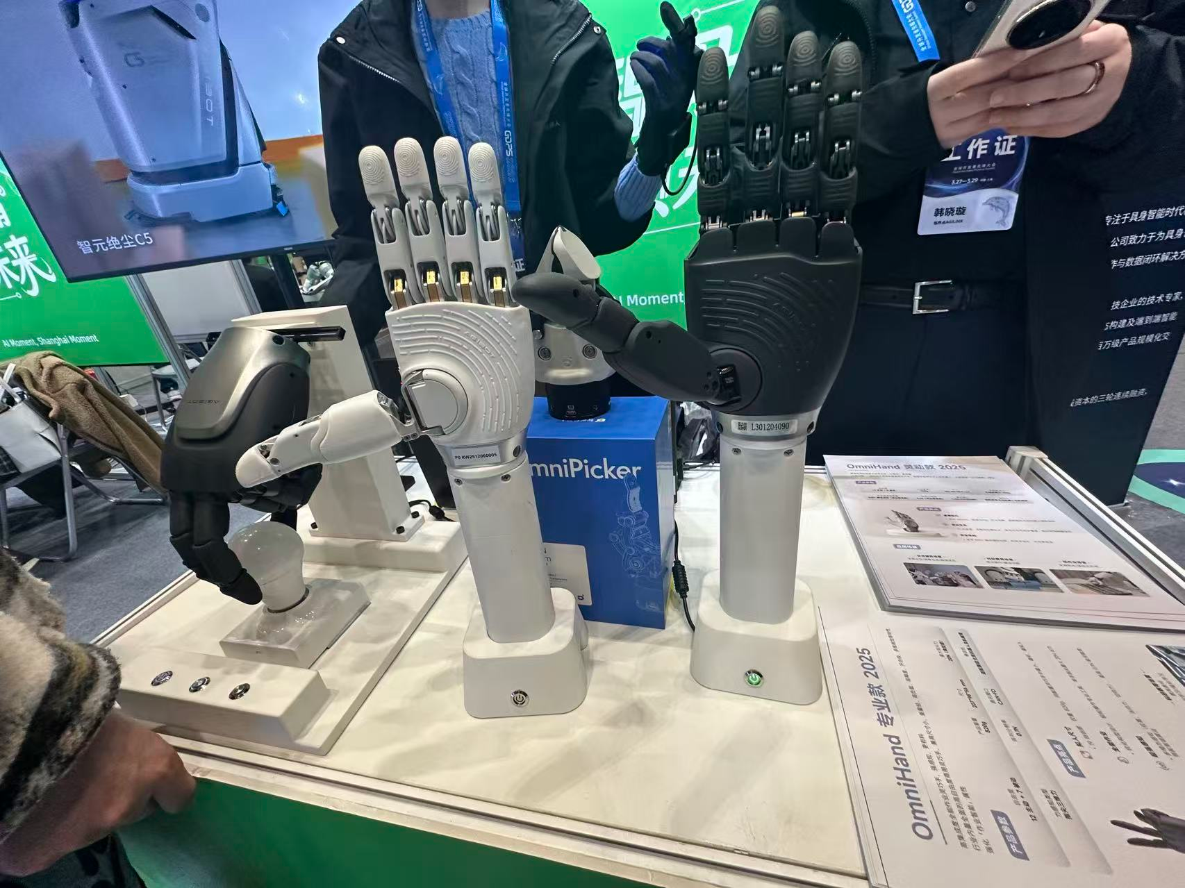 智元机器人旗下 灵巧手 公司临界点也展示了最新产品。其中OmniHand专业款2025是高集成度全能作业灵巧手,实现“12个主动自由度+7个被动自由度”,产品重量820g。OmniHand灵动款2025是行业内唯一一款小尺寸高自由度商用灵巧手,适用于各种尺寸人形机器人,实现“10个主动自由度+6个被动自由度自由度”,产品重量510g。