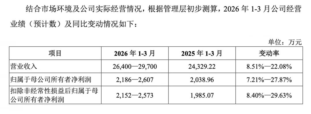春光集团招股书称,预计公司2026年一季度实现净利润2186万元至2607万元,同比增长7.21%至27.87%。