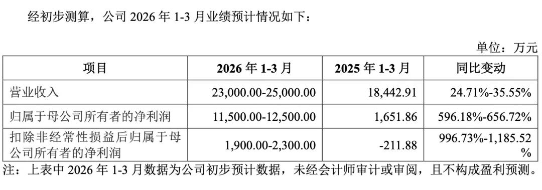 中科仪招股书称,预计公司2026年一季度实现净利润1.15亿元至1.25亿元,同比增长596.18%至656.72%。