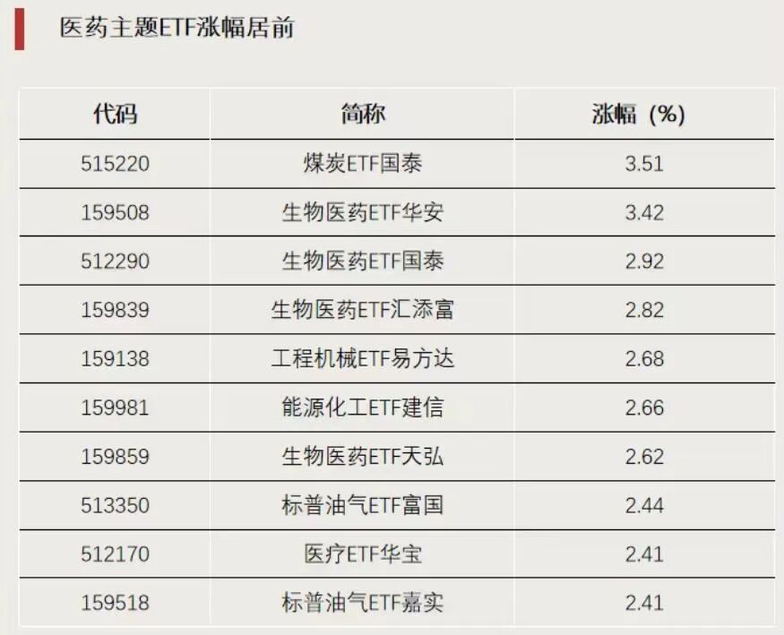 医药主题ETF涨幅居前